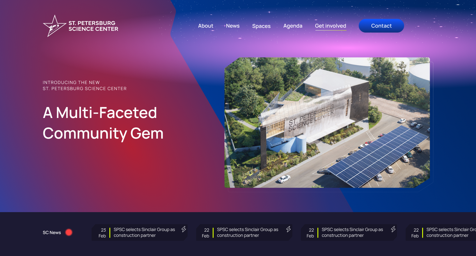 Designed and developed the website for the new St. Petersburg Science Center. A project with strong support from the city of St. Petersburg, Florida. The new building will open doors in 2027.